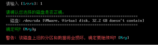 2.再次确認選擇按照(zhào)的(de)磁盤是(shì)否正确,确定輸入 y