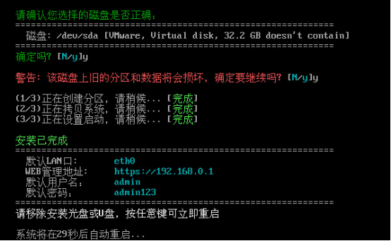 3:确認選擇的(de)磁盤将被完全格式化(huà)安裝。 确定輸入 y 開(kāi)始安裝,按照(zhào)完成界面如(rú)下(xià):