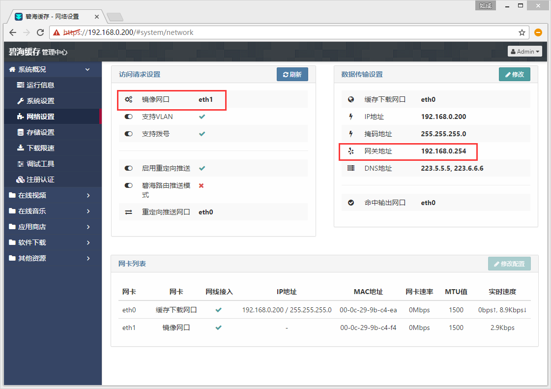設置服務器(qì)網關地(dì)址和(hé)DNS服務器(qì),保證緩存服務器(qì)可(kě)以上(shàng)網