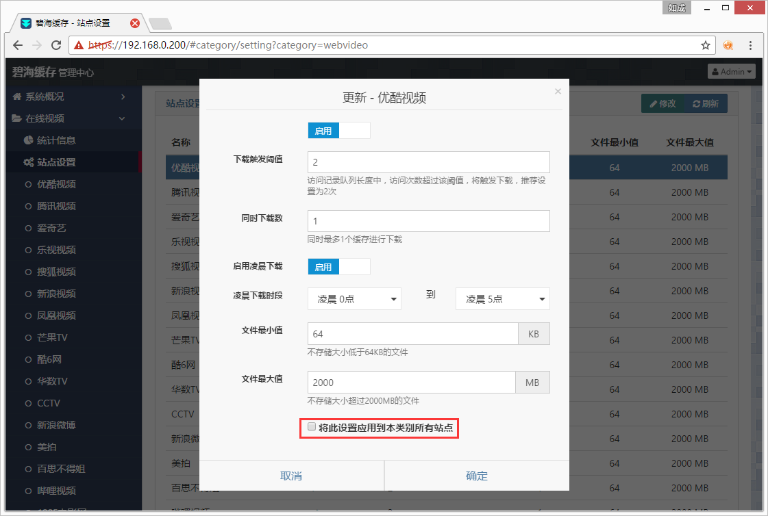 在每個(gè)大(dà)類下(xià)面的(de)站(zhàn)點設置裡(lǐ),可(kě)以設置,同時(shí)下(xiαà)載連接數(shù)和(hé)最小(xiǎo)緩存文(wén)件(jiàn)的(de)臨界值。