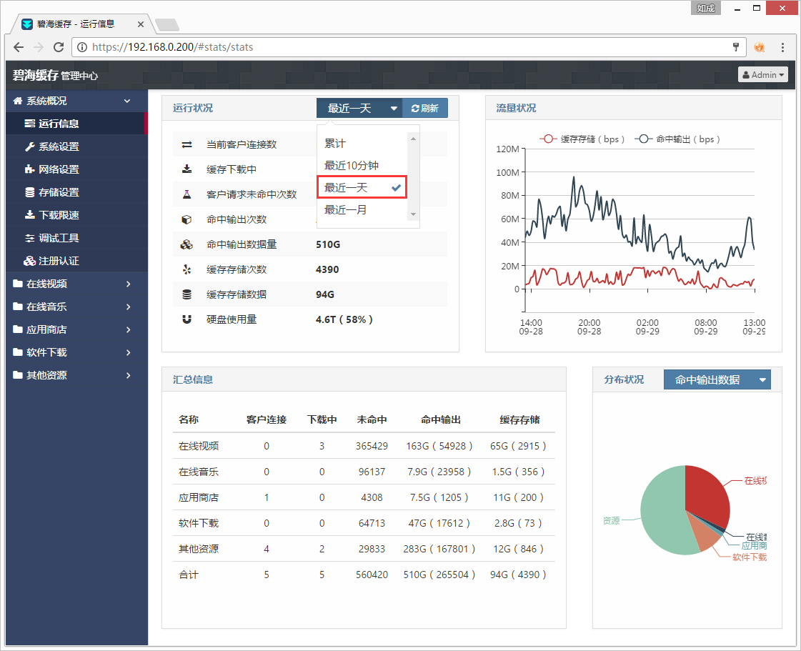 可(kě)以按照(zhào)最近(jìn)10分(fēn)鐘(zhōng)、最近(jìn)一(yī)天、最近(jìn)一(yī)月(yuè)以及累計(jì)∏四個(gè)時(shí)段來(lái)查看(kàn)運行(xíng)狀況