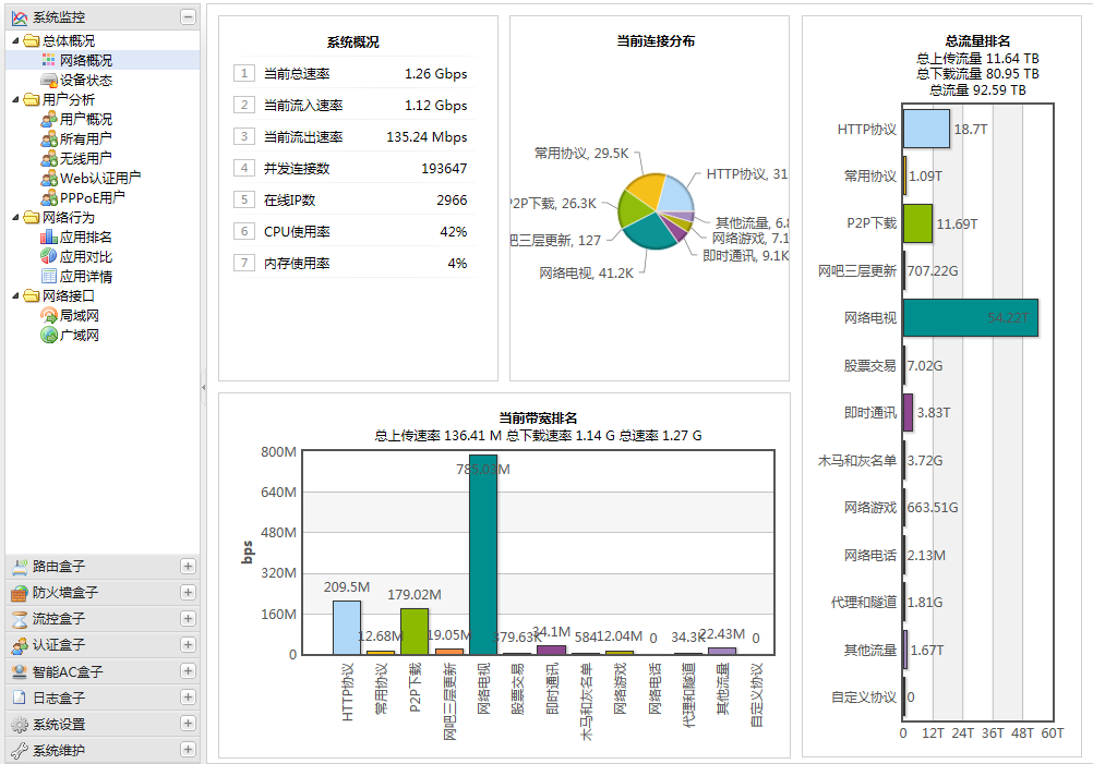 路(lù)由器(qì)+七層流控+防火(huǒ)牆+負載均衡+行(xíng)為(wèi)管理(lǐ)+WiFi管理(lǐ)
