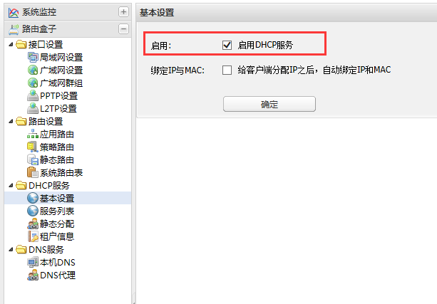2.打開(kāi)DHCP服務-基本設置-啓用(yòng)DHCP服務,打勾。