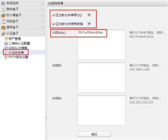 認證白(bái)名單 內(nèi)開(kāi)啓認證之前允許使用(yòng)微(wēi)信/QQ)